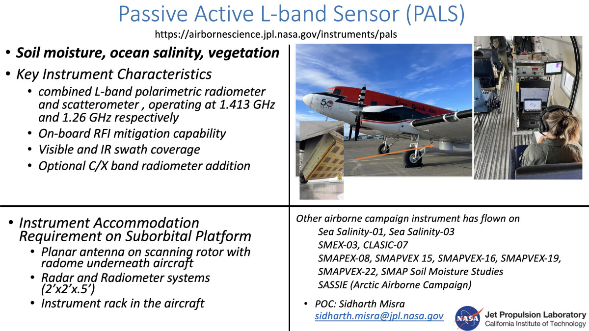 It was designed and built to investigate the benefits of combining passive and active microwave sensors for ocean salinity and soil moisture remote sensing. It was the prototype for the Aquarius and SMAP missions and has flown more than 800 hours in support of NASA campaigns.