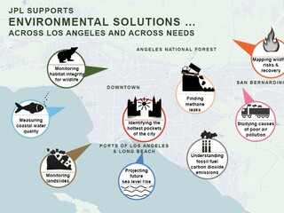 Map gives a quick overview of how JPL Earth Science supports environmental solutions, across Los Angeles and across needs.